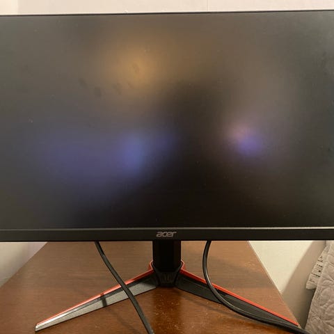 Acer skärm på 24 tum i svart utförande. Skärmen har anslutningar för VGA, DVI och HDMI på baksidan, vilket gör det möjligt att koppla in olika typer av datorer och andra enheter. Passar för allmän datoranvändning som arbete, studier och vardagligt bruk. Stativet är integrerat och skärmen står på ett bord eller annan plan yta.