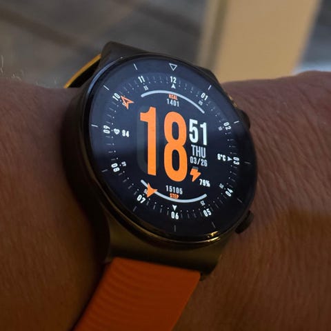 DT G1 smartklocka GPS orange silikonarmband, för träning och äventyr.