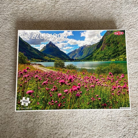 Tactic pussel med 1000 bitar med motiv av ett slott i bergslandskap.