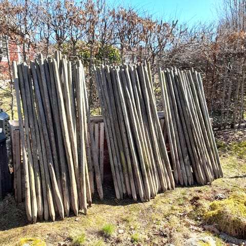 Har 60st svarta stängselstolpar i svart plast/glasfiber. 156cm långa totalt. 136cm ovanför marken. Använda en säsong. På några stolpar har en av hållarna gått av. Men går att fästa det man använder ändå. Tänkte mig 800kr.