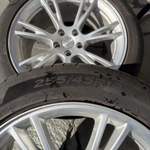 Tesla model y sommardäck med fälgar.
