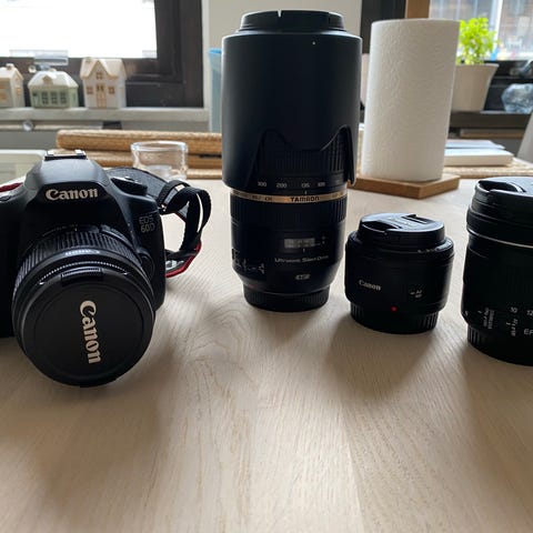 Säljer min mycket välvårdade Canon EOS 2000D med ett komplett paket av objektiv och tillbehör. Perfekt för dig som vill börja fotografera direkt eller ta nästa steg inom foto – här får du allt i ett!