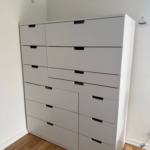 Vit Nordli byrå med 10 lådor i gott skick - Gratis leverans