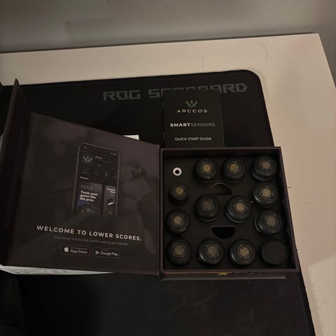 Ernest Sports ES12 golfradar i blå färg. Bärbar launch monitor för golf som mäter bollhastighet och slaglängd. Enheten har digital display på framsidan och utfällbart stöd på baksidan för placering bakom bollen. Levereras med skyddspåse med dragsko från Ernest Sports för förvaring och transport.