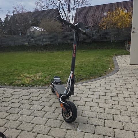 Min elscooter är i bra skick den kör i 40 kilometer i timmen och har en räckvidd på 40 km det finns en app som man kan ställa in hastigheten typ som police mode fast man väljer vilken hastighet man ska spärra till