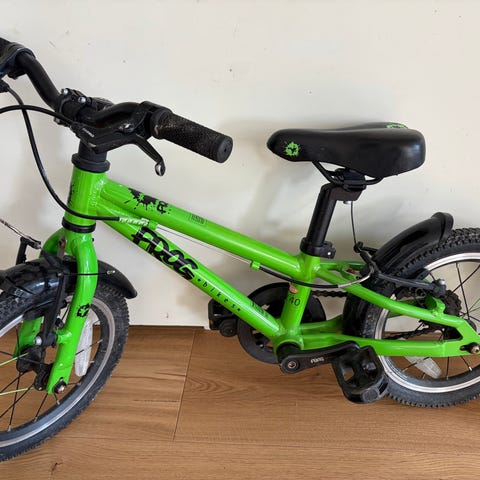 Woom barncykel med 14 tums hjul och LEGGIE-cykelstöd. Mycket bra skick.