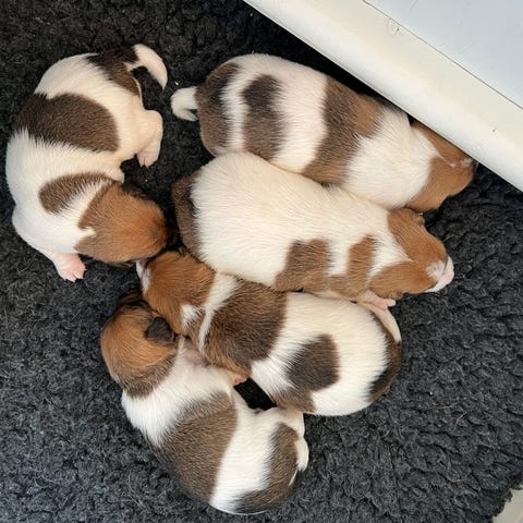Den 1/4 föddes 4 trefärgade tikar med låna svans här hos oss.