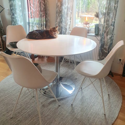 Perfekt för både vardag och större middagar. Runt bord som enkelt förlängs vid behov. Tidlös design som passar i de flesta hem.