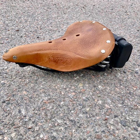 Brooks cykelsadel i svart läder. Sadel med utskärning i mitten och klassisk Brooks-design med nitar. Levereras med originalkartong och medföljande tillbehör som skosnören/remmar enligt bild. Passar montering på standardcyklar med kompatibel sadelstolpe och används för vardagscykling eller längre turer.