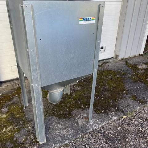 Naturenergi Träbo-Villa 3 pelletsbrännare med tillhörande pelletsförråd och matarskruv. Brännaren är avsedd för eldning med pellets i panna eller liknande värmeanläggning. Utrustningen inkluderar brännarenhet med styrning, skruvtransportör för pellets samt fristående plåtförråd på ben. Lämplig för installation i pannrum eller liknande utrymme där man önskar pelletseldning som värmekälla.