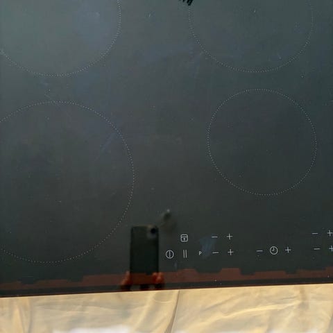 Siemens induktionshäll i svart. en av plattorna har slitning efter användning som framgår av bilden