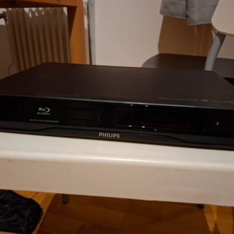 Philips dvd-spelare i svart utförande. Enheten har frontmatad skivlucka och digital display på framsidan. På baksidan finns flera anslutningar för ljud och bild, bland annat kompositvideo, komponentvideo, SCART och analoga ljudutgångar. Strömkabel ingår enligt bild. Lämplig för uppspelning av dvd-filmer och ljudskivor via tv eller stereoanläggning med motsvarande ingångar.