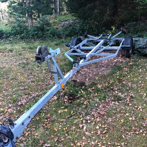 Vagnen är utrustad med manuell vinsch och hjulstöd för båtens skrov. Passar för transport och sjösättning/upptagning av mindre båt.