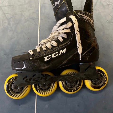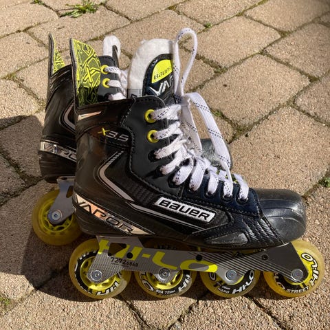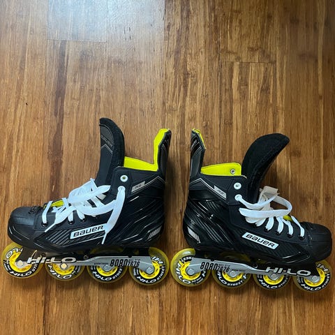 Bauer inlines rullskridskor i storlek (7)42. Modellen har svart ytterdel med gula detaljer och vita skosnören. Utrustade med Hilo-hjul och aluminiumchassi anpassat för inlinesåkning. Passar för rullhockey eller fritidsåkning på asfalt och andra hårda underlag. Avsedd för vuxen/herrstorlek 42.