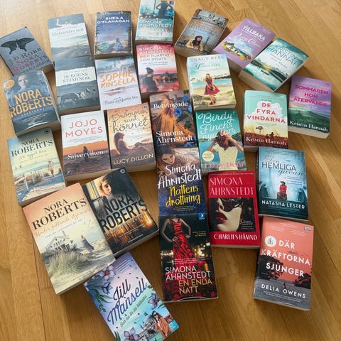 Bokpaket med flera romaner i pocketformat av blandade författare. I paketet ingår bland annat titlar av Lucy Dillon, Marian Keyes, Lucy Diamond, Jenny Colgan, Carin Hjulström, Emma Hamberg, Liz Fenwick, Lucinda Riley och andra författare. Böckerna är huvudsakligen skönlitterära romaner, många med romantiska och vardagsnära teman. Flera av titlarna är fristående berättelser och kan läsas oberoende av varandra. Passar för läsning hemma, på resa eller som bokcirkelmaterial. Alla böcker är på svenska där originalspråket är översatt.