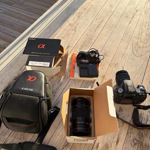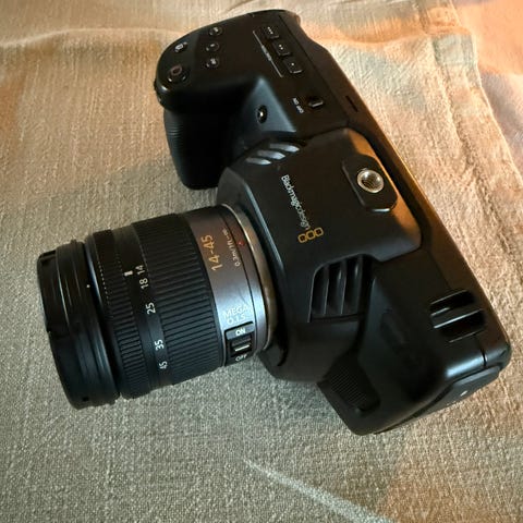 Panasonic Lumix DC-GH5 systemkamera. Kameran är en spegellös systemkamera (Micro Four Thirds) med elektronisk sökare och vridbar/tiltbar LCD-skärm. På bilderna syns kamerahus med monterat objektiv och motljusskydd, flera batterier (4st) samt laddare. Lämplig för både stillbilds- och videofotografering. Alla delar som ingår framgår av bilderna och originalkartong finns med.