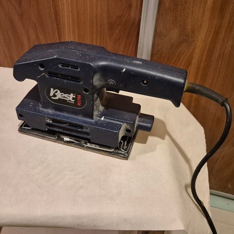 Oscillerande slipmaskin för torrslipning i trä, metall och plast. Utrustad med varvtalsregulator och kardborrfäste