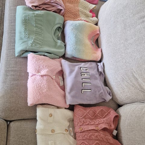 Pyjamasar, nattlinnen, yogapants, jeans, tjocka tröjor, T-shirts, klänningar, shorts, kjolar osv.
