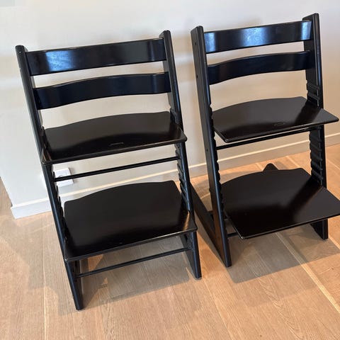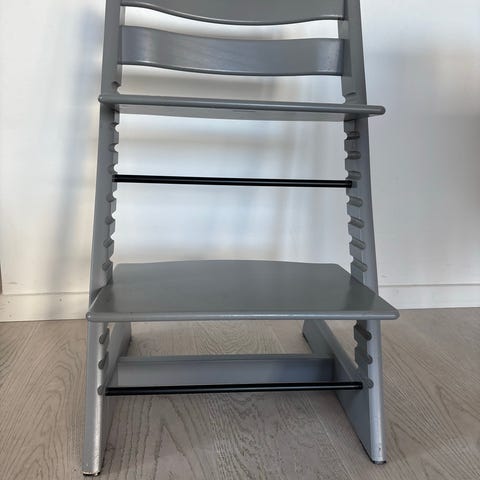 Stolen är använd men i fint skick, några mindre märken här och där, se ex på bilder. Babyinsats i grått.