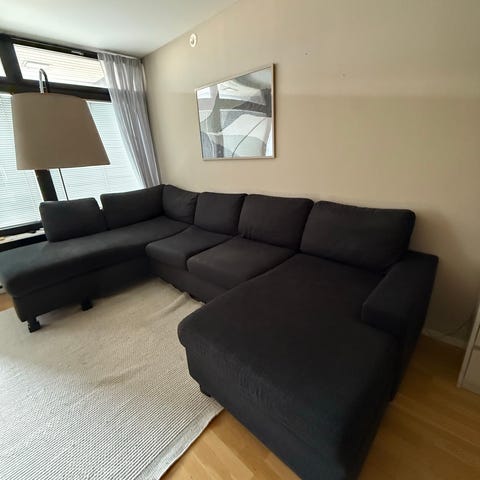 Fotpall ca 70x63 samma sitthöjd som soffan.