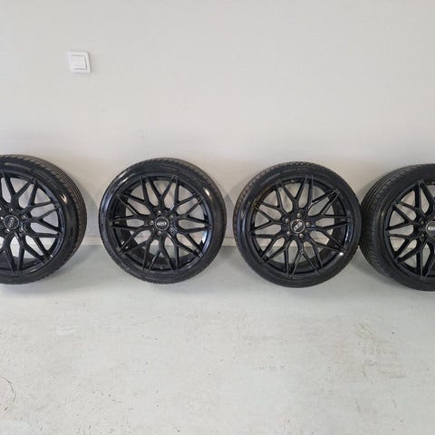 Säljes en uppsättning med BMW fälgar (ej original BMW) dem är lite kantstötta och 1 fälg har en liten spricka som måste svetsas.