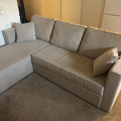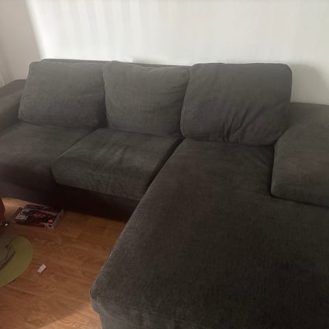 Tyget har gått upp lite på baksidan av soffan men inget som syns eller påverkas om den står mot en vägg.