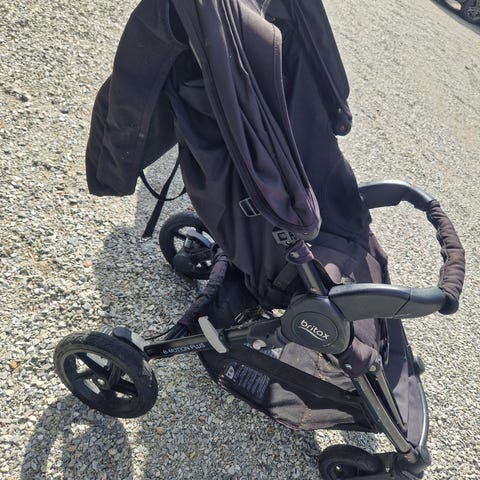 Britax barnvagn i lila och svart färg. Vagnen har tre hjul med svängbart framhjul, varukorg under sittdelen samt justerbart handtag. Sittdelen är utrustad med sele och bygel framtill. Vagnen är hopfällbar för enklare förvaring och transport. Passar ett barn som sitter upp själv.