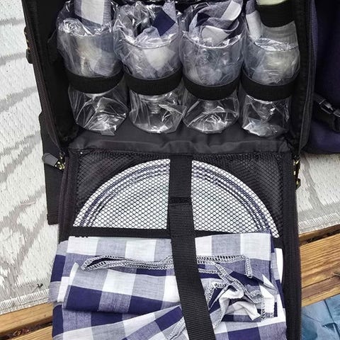 Set med kylväska och blå plastglas.