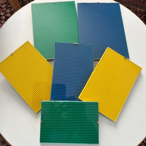Fotoramar som använts vid utställning. En del ramar har klarglas andra plast front: