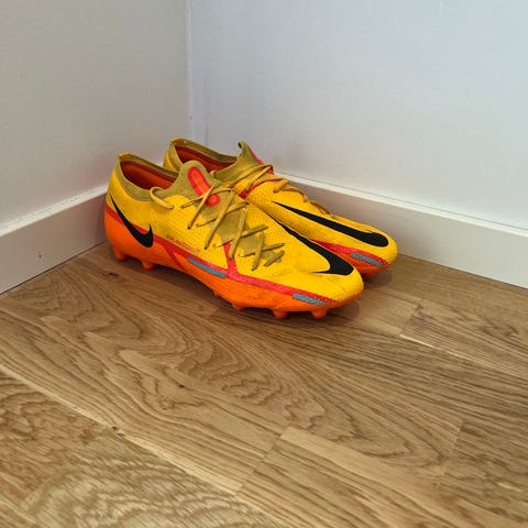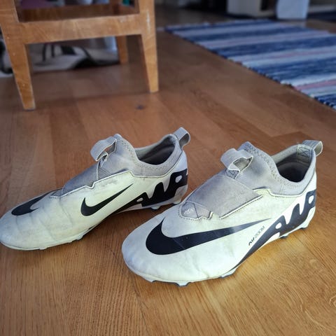 Nike fotbollsskor i vit färg med svarta detaljer. Skorna har fasta dobbar och är avsedda för spel på gräsplan. Som syns på bilder. Den är ju använt men kan användas stlk 42