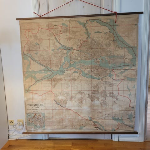 En inramad karta över ett Stockholm under andra halvan av 1800-talet (kvalificerad gissning). Ramen är svart.