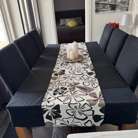 Massiv vitmålat köksbord och 4 vitmålade stolar från berömda Ivar Martis snickeri i Våmhus Dalarna. Lånad bild på bordet