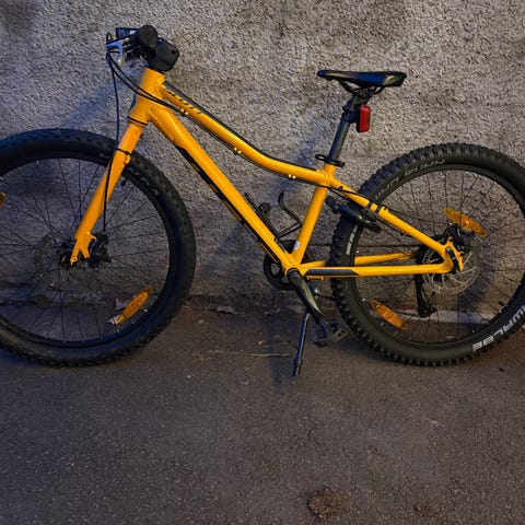 Cykeln är välanvänd och har gjort ett antal mil i både skog, berg och asfalt. Den är utrustad för gatubruk med ringklocka och lysen för användning till vardags (OBS, inget stöd)