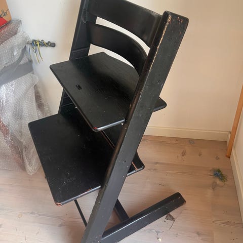 Säljer en Stokke tripp trapp i nya modellen från 2017 som är kompatibel med både babyinsats och newborninsats. Finns några märken som syns i vissa ljus men annars ommålad och fräsch.