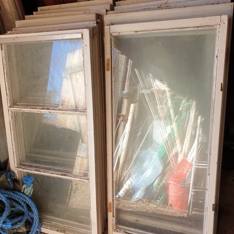 Vackert tvåglasfönster som är lämpligt att använda där ljusinsläpp önskas men inte insyn: Spännande gult glas på det yttre glaset.... Kan bli en spännande detalj till ert husbygge eller renovering.