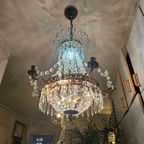 Fin kristallkrona i bra skick, hänger vackert och sprider fint ljus. Perfekt för vardagsrum eller matsal.