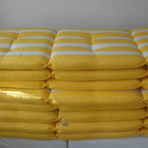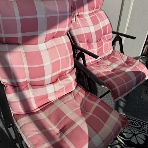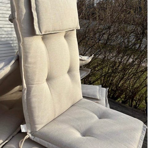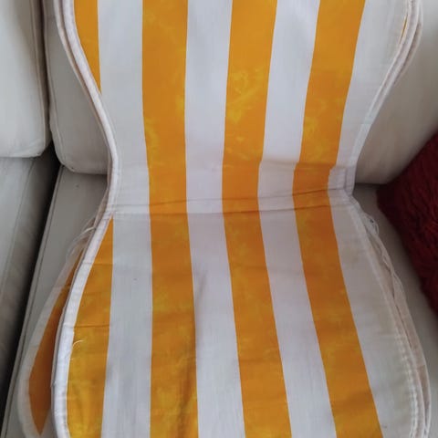 Randiga dynor för stol i grön /vit färg. 80x43 cm.