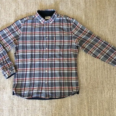 Säljer två stycken Cubus skjorta för herr i storlek M. Skjortorna är flerfärgad med rutigt mönster och är tillverkade i bomull.