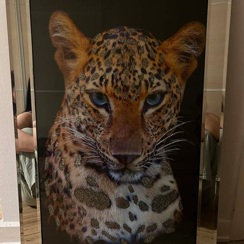 Mio tavla med motiv av flera elefanter i grå och vita toner med inslag av guld. Väggdekoration som passar exempelvis vardagsrum, sovrum eller hall. Rektangulär duk med strukturerad yta och abstrakt stiliserat djurmotiv i neutrala färger med gulddetaljer.