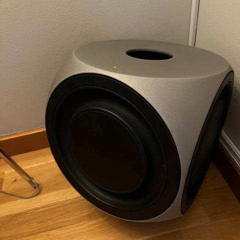 Bang & Olufsen subwoofer Beolab 19 i silver grå färg.