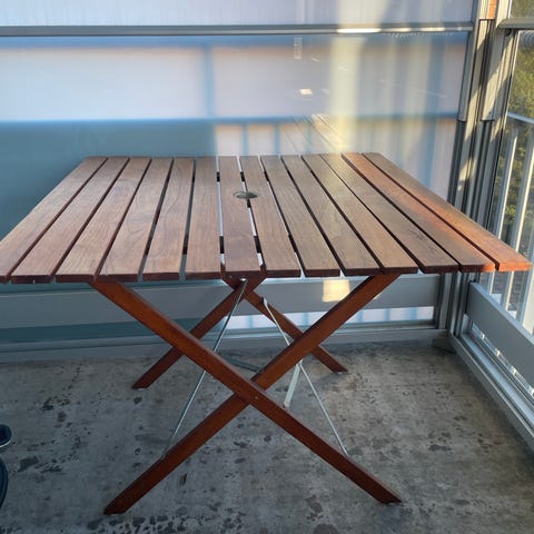 Bord och stolar behöver träbehandling men annars har det inga funktionella problem.
