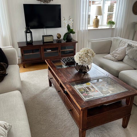 Mitt luckan på tv bänken är borta, går att beställa ny från Ikea. Soffbord 300:-