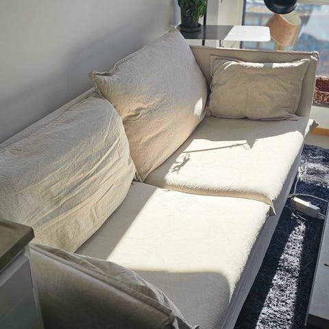 🛋️ Klädseln är helt avtagbar och sittkuddarna tvättas av oss innan försäljning (lite smuts från transport).