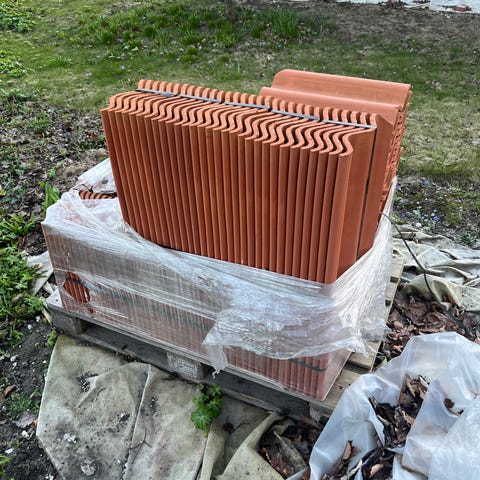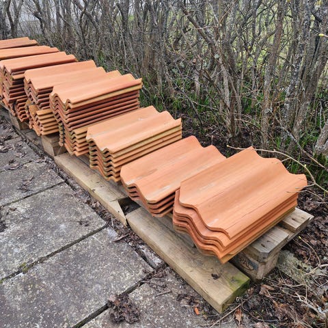 Klassiska enkupiga takpannor/taktegel E13 från Monier Vittinge tegelbruk, det enda kvarvarande tegelbruket i Sverige.