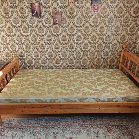 Huvud- och fotgavel till säng, massivt trä