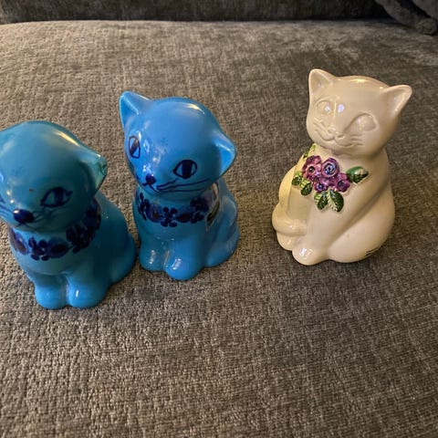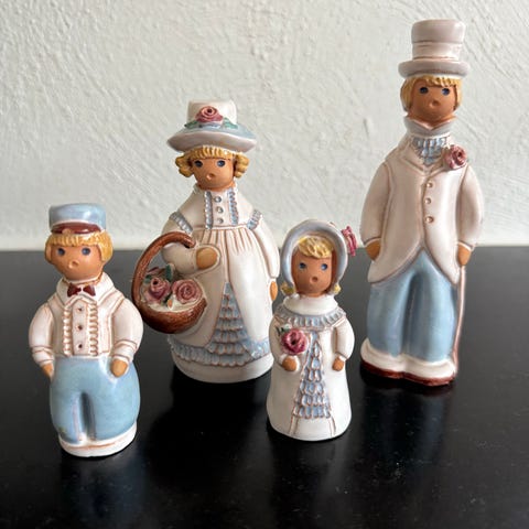 I sina originalaskar. Alla i toppskick, aldrig använts annat än stått som prydnad.
