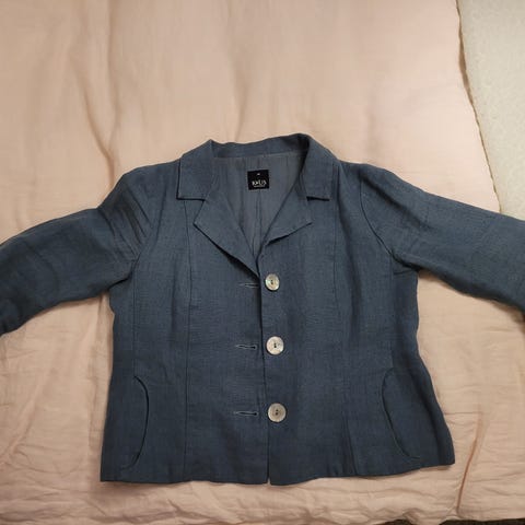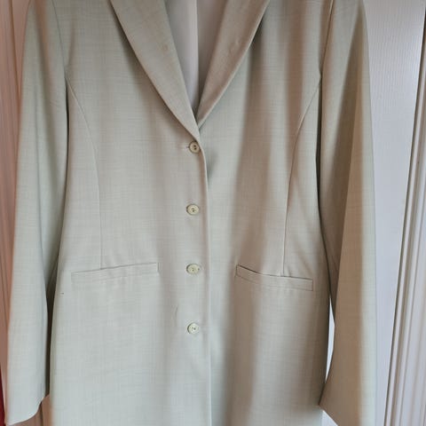 Fin beige kavaj i storlek 40. Den är i 55%lin o 45% viskos.