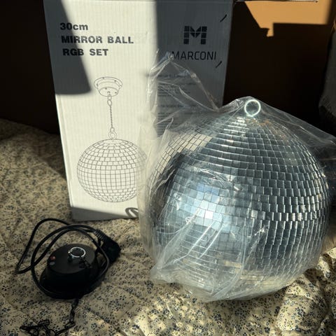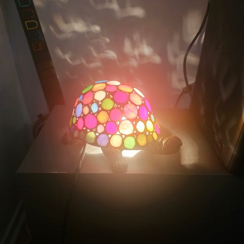 Diskolampa i svart med flerfärgade prickar. Lampan står på en rund fot och ansluts med kabel. Passar för inomhusbruk, till exempel i hemmet eller vid mindre fester , party, barnkalas för att skapa roterande ljuseffekter på väggar och tak den är 25 cm stor om inte mer