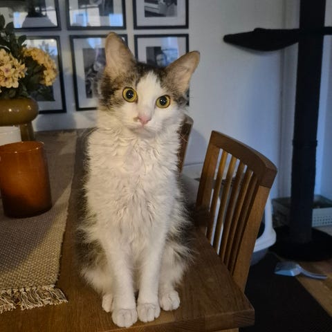 Han skulle passa bäst i ett hem där han får mycket uppmärksamhet. Han tycker om barn så både barnfamilj och familj utan barn skulle fungera. Dock får inga andra fertila katter finnas i hemmet.