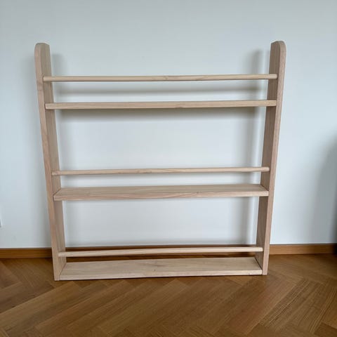 Vit tallrikshylla / barnhylla i massivt trä 80x97 cm